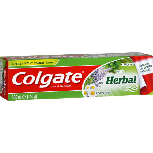 H Colgate Herbal συνδυάζει την προηγμένη τεχνολογία της Colgate στη στοματική υγιεινή με τα πιο εκλεκτά φυσικά βότανα.                                                                                      Περιέχει φθόριο, ασβέστιο και εκχυλίσματα από χαμομήλι, φασκόμηλο, μύρο και ευκάλυπτο.