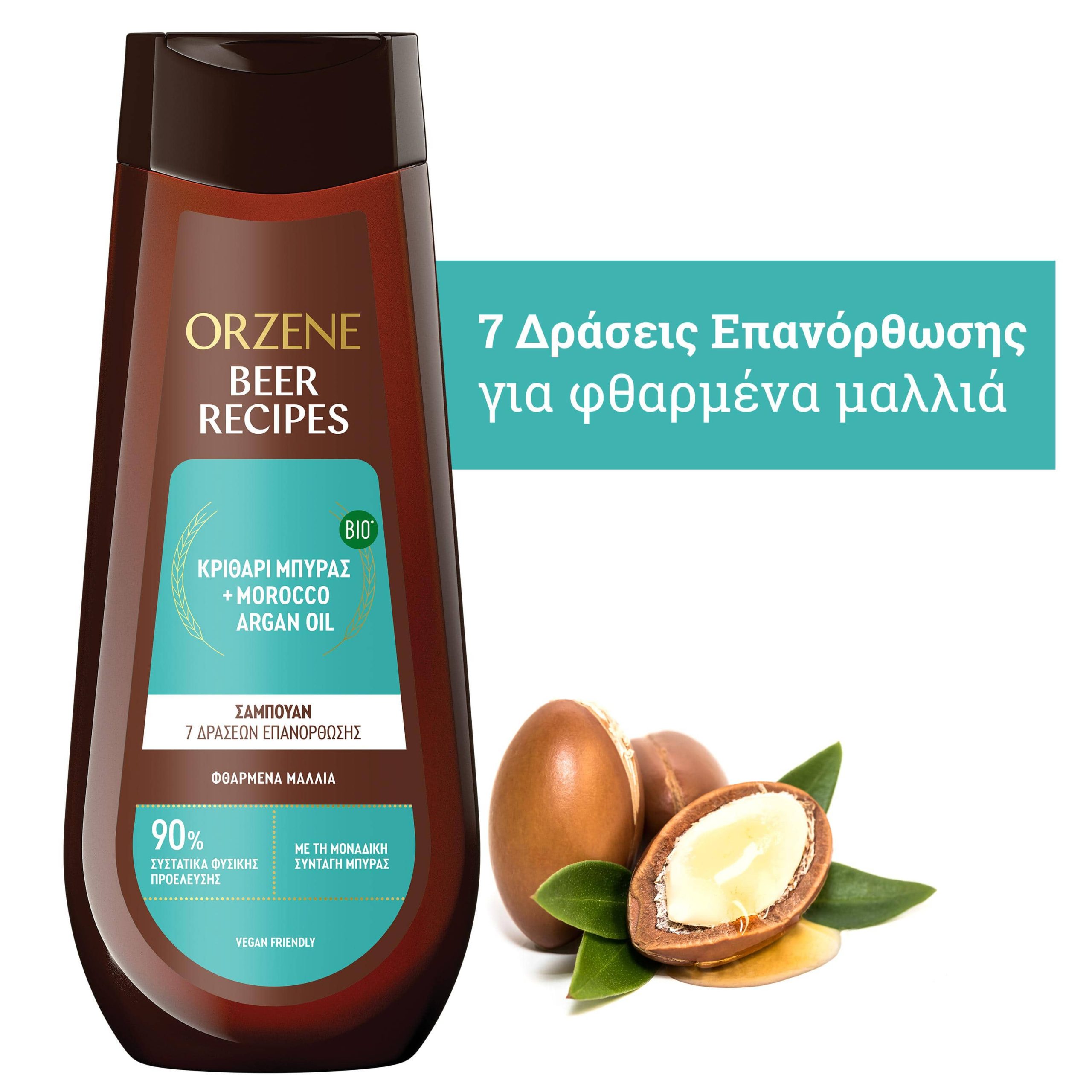 Orzene beer recipes. Bio κριθάρι μπύρας + Morocco Argan Oil. Σαμπουάν 7 δράσεων επανόρθωσης. Ενδυνάμωση & λάμψη για φθαρμένα μαλλιά.