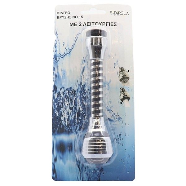 Φίλτρο βρύσης με πρακτική περιστρεφόμενη κεφαλή με  2 επιλογές “ρίψης”: ντους/κανονική.