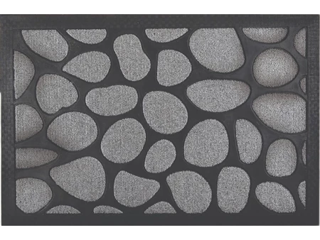 Ανθεκτικό και απορροφητικό ποδόμακτρο για την είσοδο των κατοικιών με σχέδιο βότσαλα Είναι κατασκευασμένο από μοκέτα και λαστιχένιο υπόστρωμα και έχει πάχος 1,5εκ.. Πλένεται με νερό.