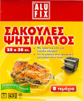 Σακούλες ψησίματος της εταιρείας Alufix με πρακτικό κλιπ για εύκολο κλείσιμο,